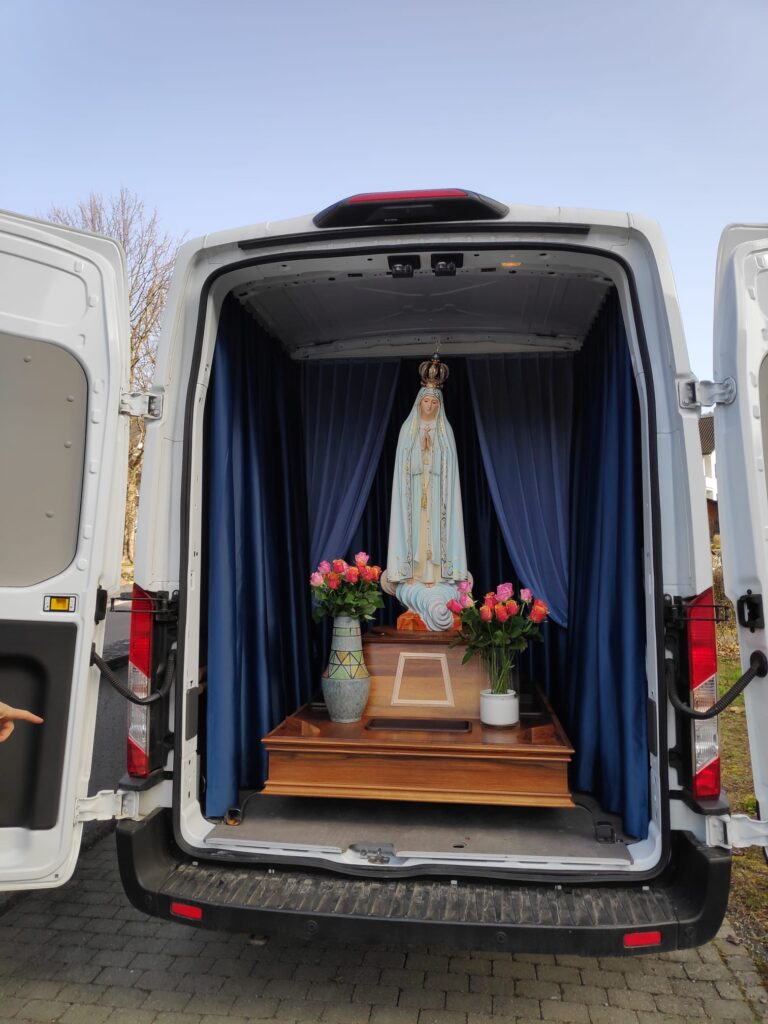 Anfang März durfte die Pfarrei Steinen einen besonderen spirituellen Höhepunkt erleben: Die nationale Fatima‑Pilgermadonna, eine originalgetreue Kopie der Statue aus der Erscheinungskapelle von Fatima (Portugal), war im Rahmen ihrer Schweiz‑Pilgerreise zu Gast in Steinen. Die Statue wurde am 2. Februar 2025 vom Bischof von Fatima gesegnet und am 10. Mai 2025 von Bischof Felix Gmür feierlich auf ihre Pilgerreise durch die Schweiz ausgesandt.